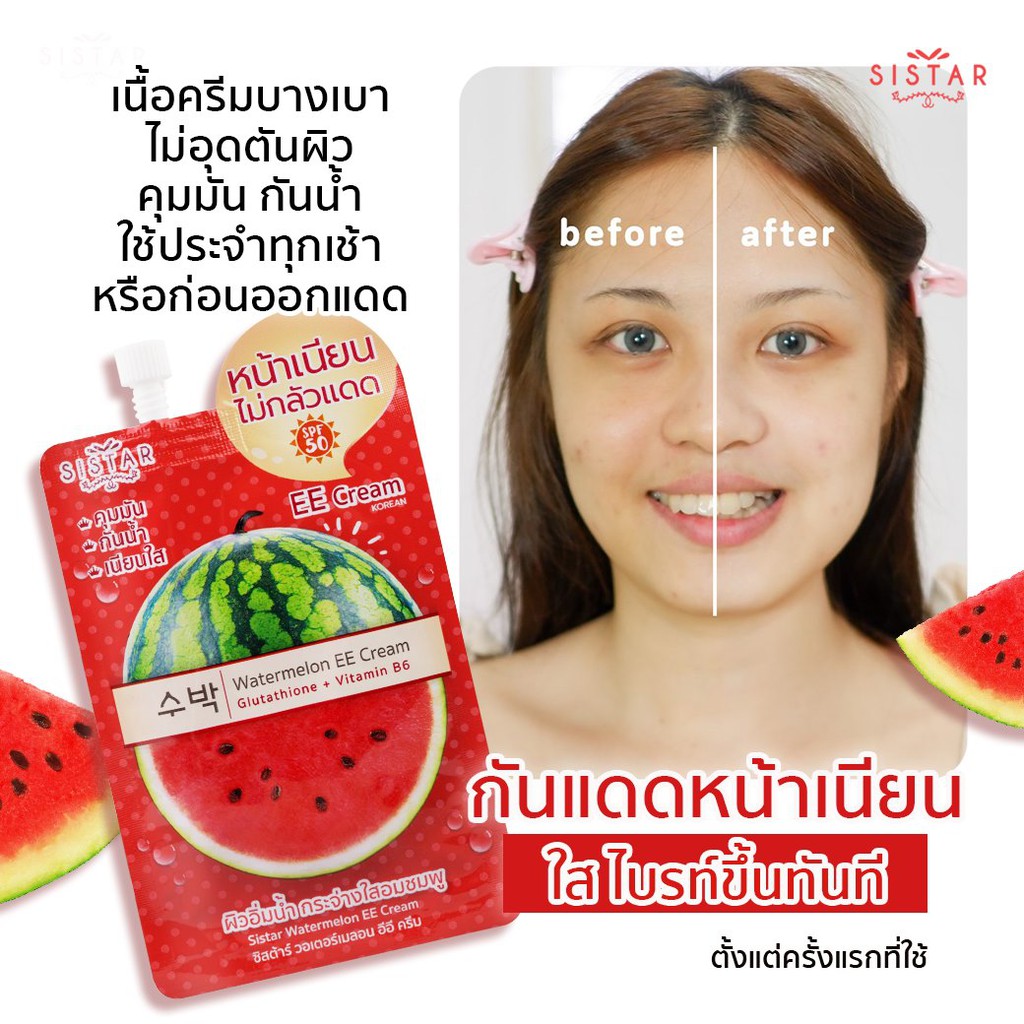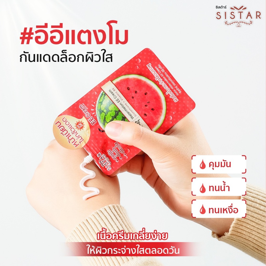 Sistar Official ซิสต้าร์ วอเตอร์เมลอน อีอี ครีม กันแดด กล่อง 6 ซอง (SST03)