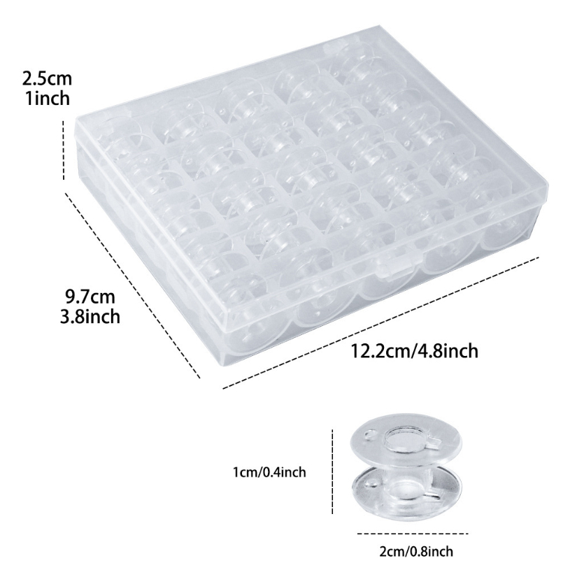 กล่องพร้อมกระสวยพลาสติก 25 ชิ้น สำหรับจักร Elvira, Singer, brother, Janome, Elna, bernette