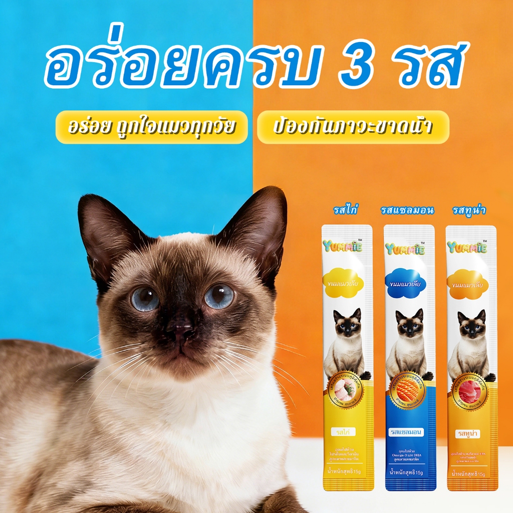 50/100pcs ขนมแมวเลีย ไม่ใส่สารกันบูด ไม่ใส่เกลือโซเดียมต่ำ น้องแมวชอบถูกใจ 3 รสชาติ อาหาร อุปกรณ์สัตว์เลี้ยง 15g YUMMIE