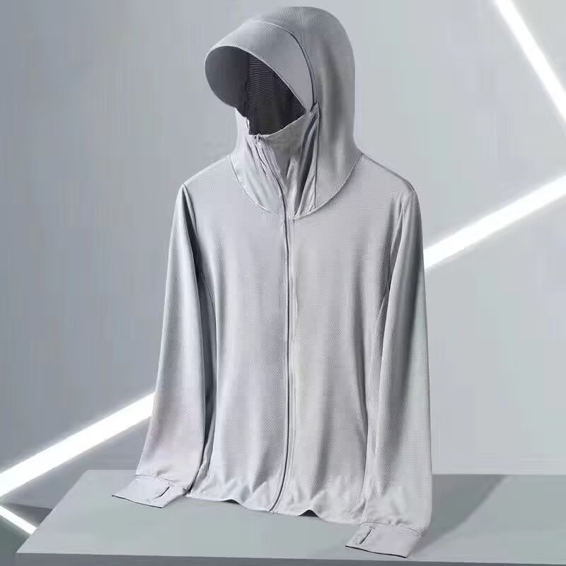 TLHGQ เสื้อแจ็คเก็ตผู้ชาย ผ้าไหมน้ำแข็ง กันแดด UV ระบายอากาศดี