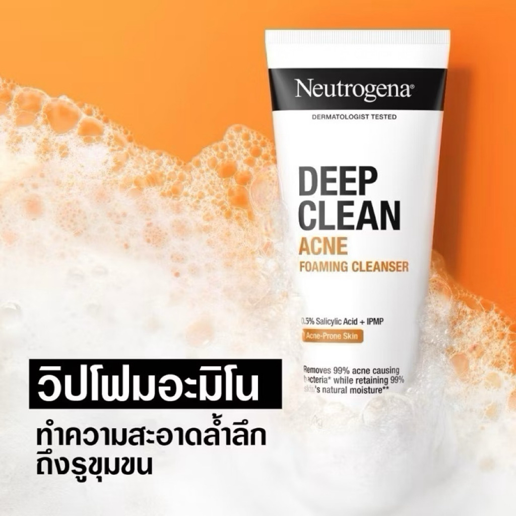 Neutrogena Deep Clean Acne Foaming Cleanser 150g นูโทรจีนา วิปโฟมอะมิโน ช่วยจัดการ 3 ต้นตอสิว