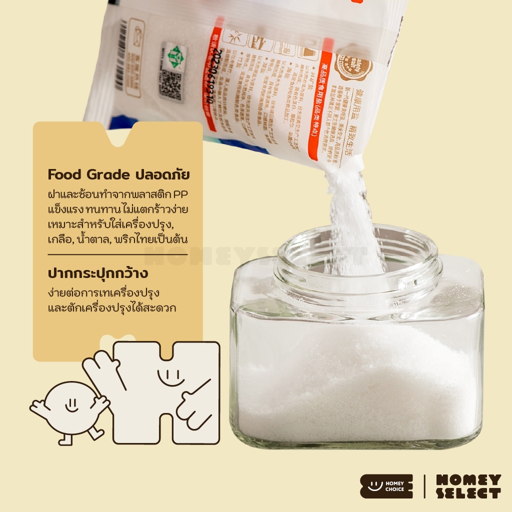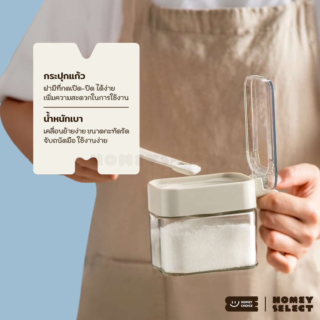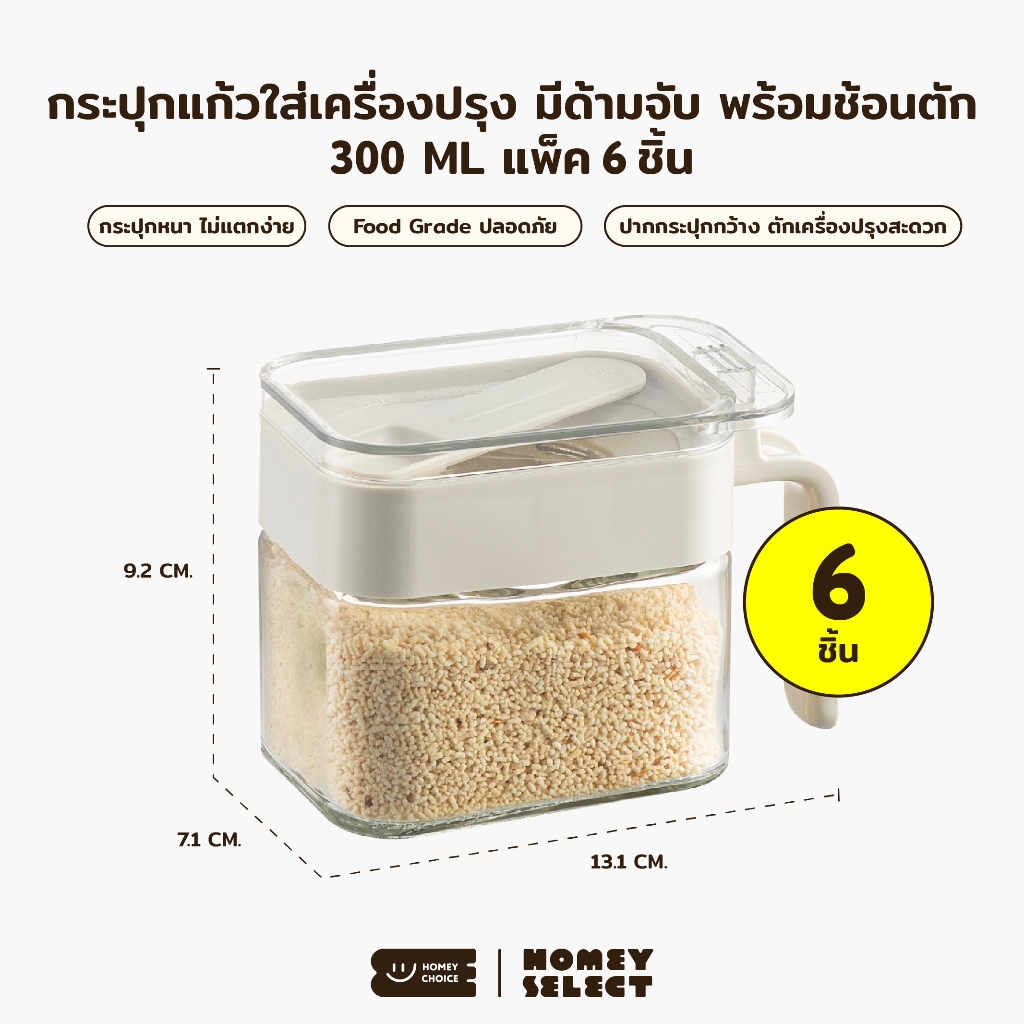 [6 ชิ้น] HomeyChoice กระปุกแก้วใส่เครื่องปรุง กระปุกใส่เกลือ ที่ใส่เครื่องปรุง food grade พร้อมช้อน ขนาด 300ML รุ่น 8031