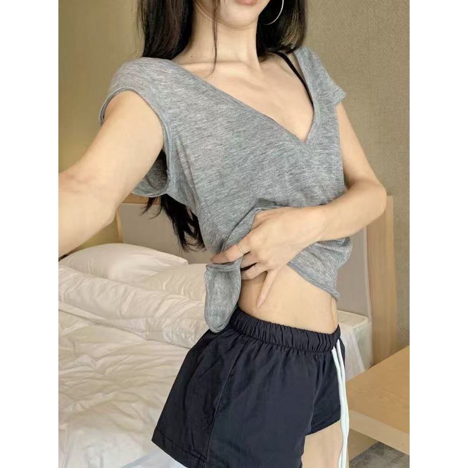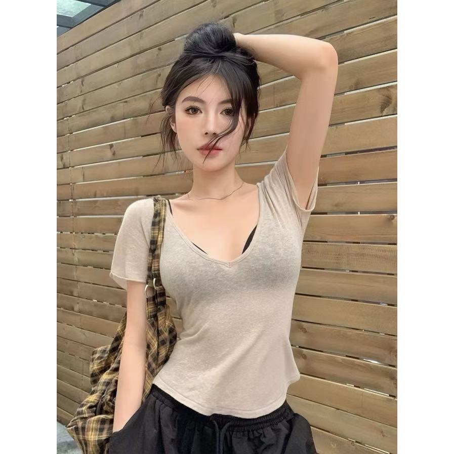 Lalita ส่งไวจากไทย เสื้อแขนสั้น คอวี ทรงหลวม กันแดด ใส่สบาย หวานเซ็กซี่ ผู้หญิง