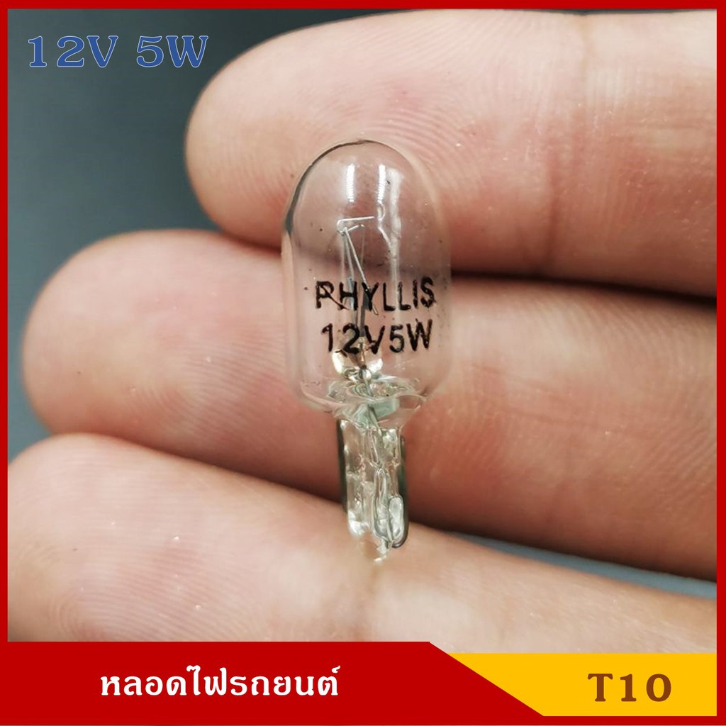 PHYLLIS หลอดไฟ T10 12V 24V 5w หลอดไฟรถยนต์ หลอดไฟเสียบ ราคา (10หลอด) กล่องละ