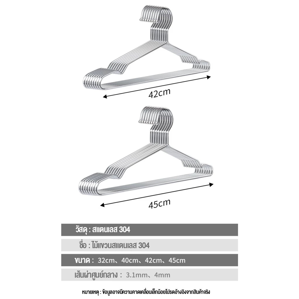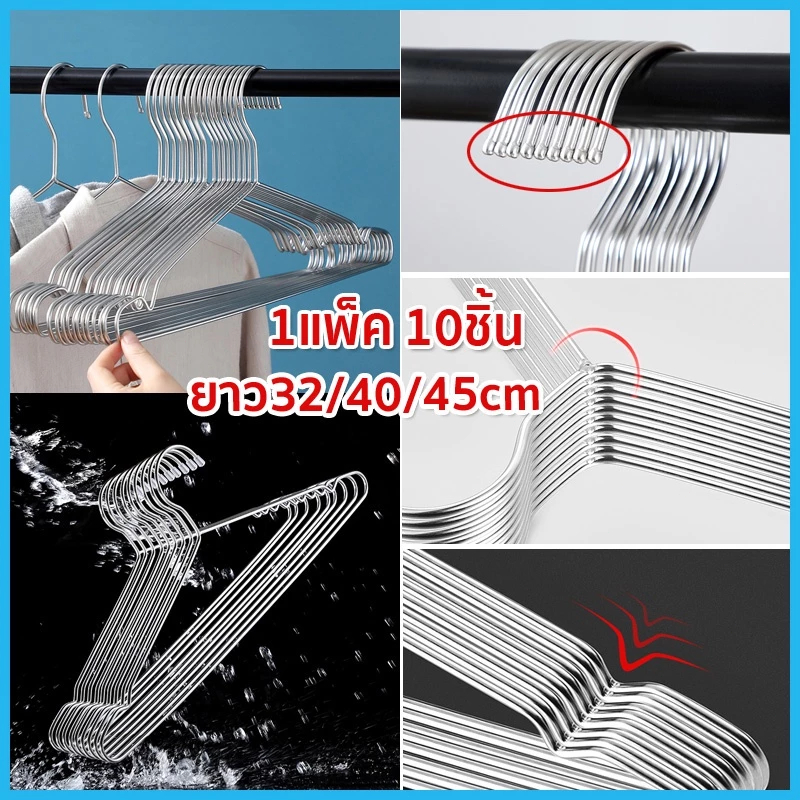 BLIVO ไม้แขวนเสื้อสแตนเลส หนาพิเศษ ยาว 32/40/45cm 1แพ็ค 10ชิ้น แขวนผ้า กางเกง แข็งแรง