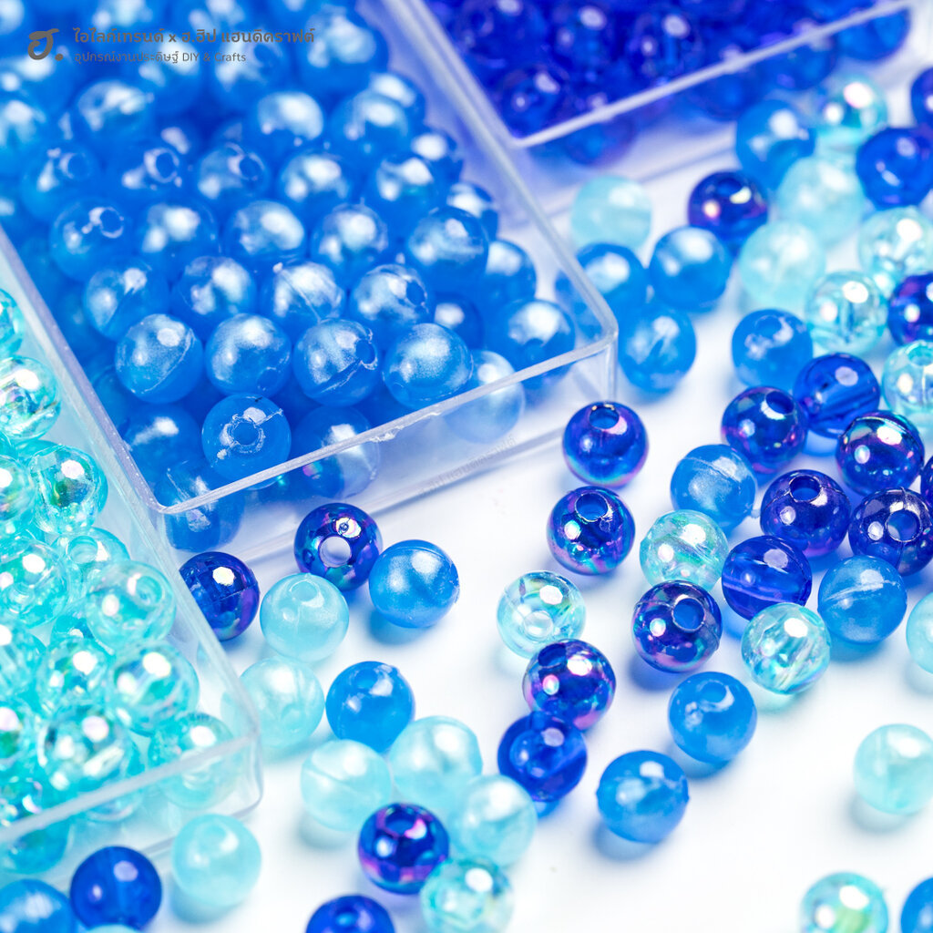 ลูกปัดเม็ดกลม 6 มม. โทนสีฟ้าน้ำเงิน เงา/มุก/ใส แพ็คเล็ก 60 ชิ้น แพ็คใหญ่ 500 ชิ้น