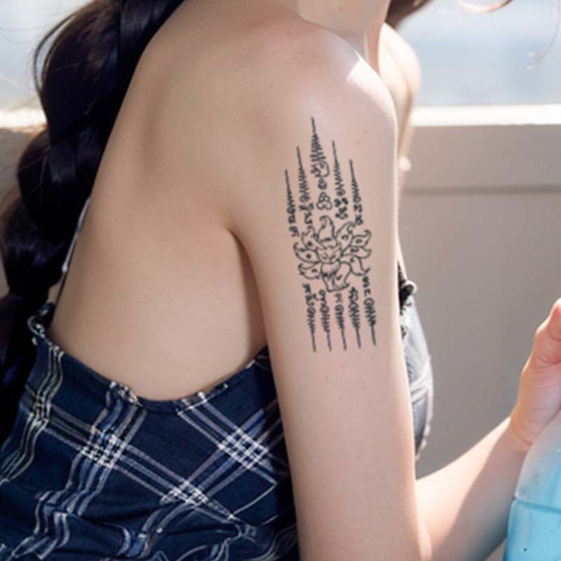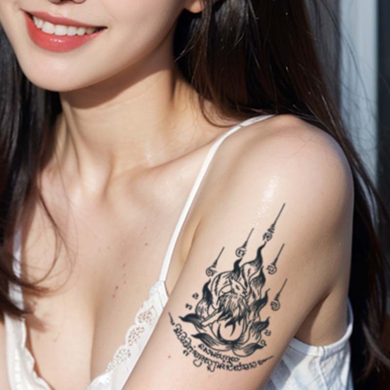 แทททู ยันต์ไทย กันน้ำ15วัน รอยสักชั่วคราว ห้าแถว เก้ายอด จระเข้ แปดทิศ หนุมาน เสือคู่ พุทธศาสนาไทย เหมือนสักจริง