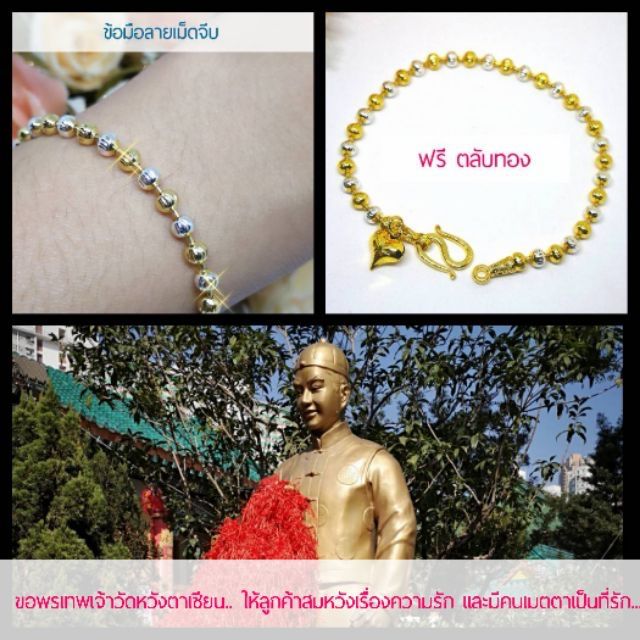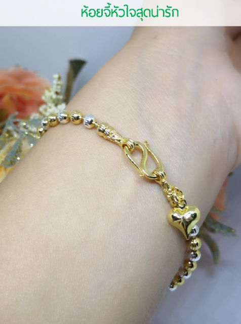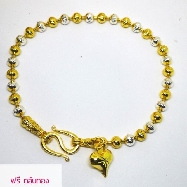 🎋สร้อยข้อมือสองกษัตริย์ลายเม็ดจีบ ห้อยจี้หัวใจบินเองขอพร วัดดังฮ่องกง ฟรีตลับทอง