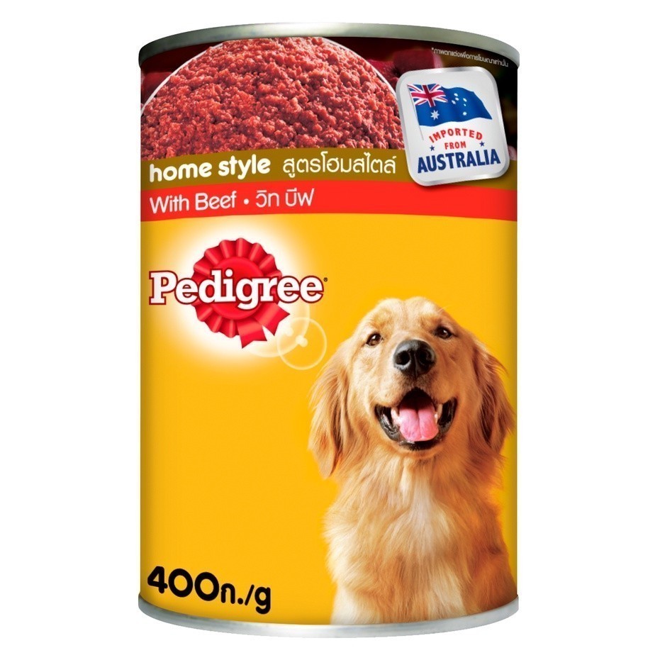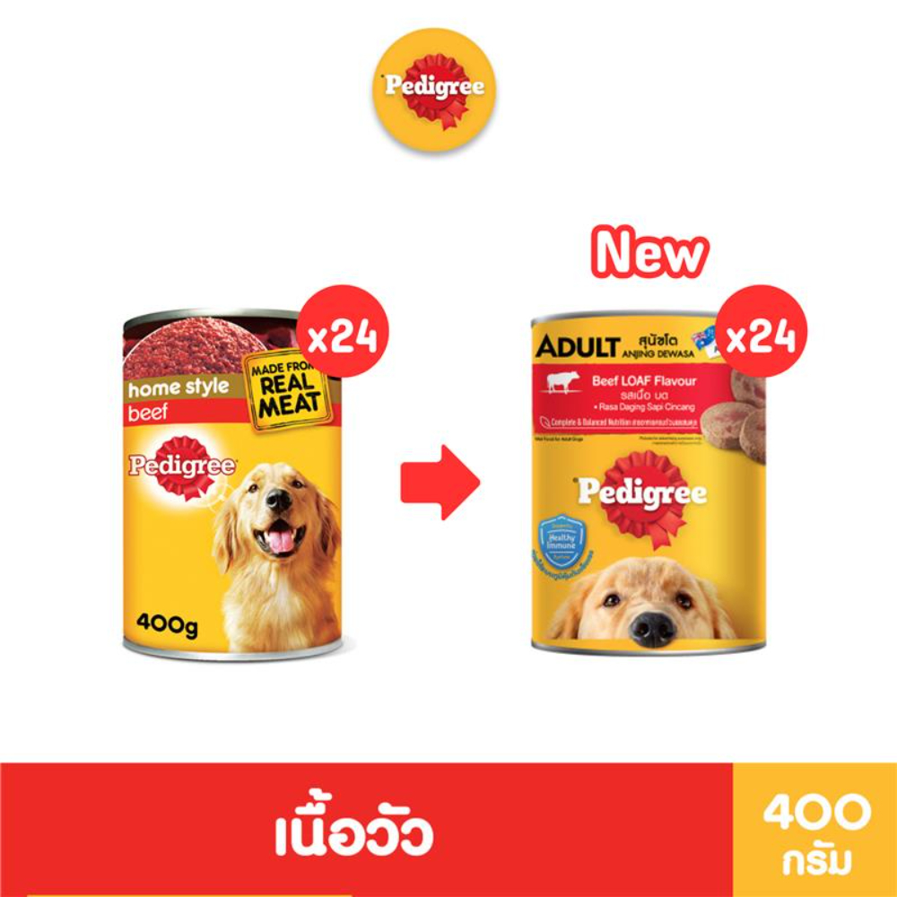 PEDIGREE เพดดิกรี อาหารหมาเปียกกระป๋อง สุนัขโตและลูกสุนัข รสเนื้อบด/เนื้อในน้ำซอส/ไก่บด/ไก่บด พร้อมผัก 400ก. [24กระป๋อง]
