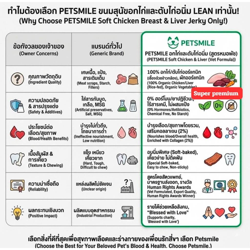 PETSMILE ขนมสุนัขอกไก่และตับไก่อบนิ่ม LEAN ไขมันต่ำ ขนมสุนัขบำรุงเลือดและสุขภาพ 200g