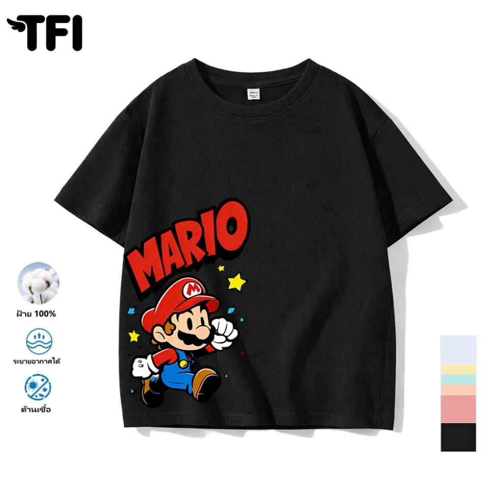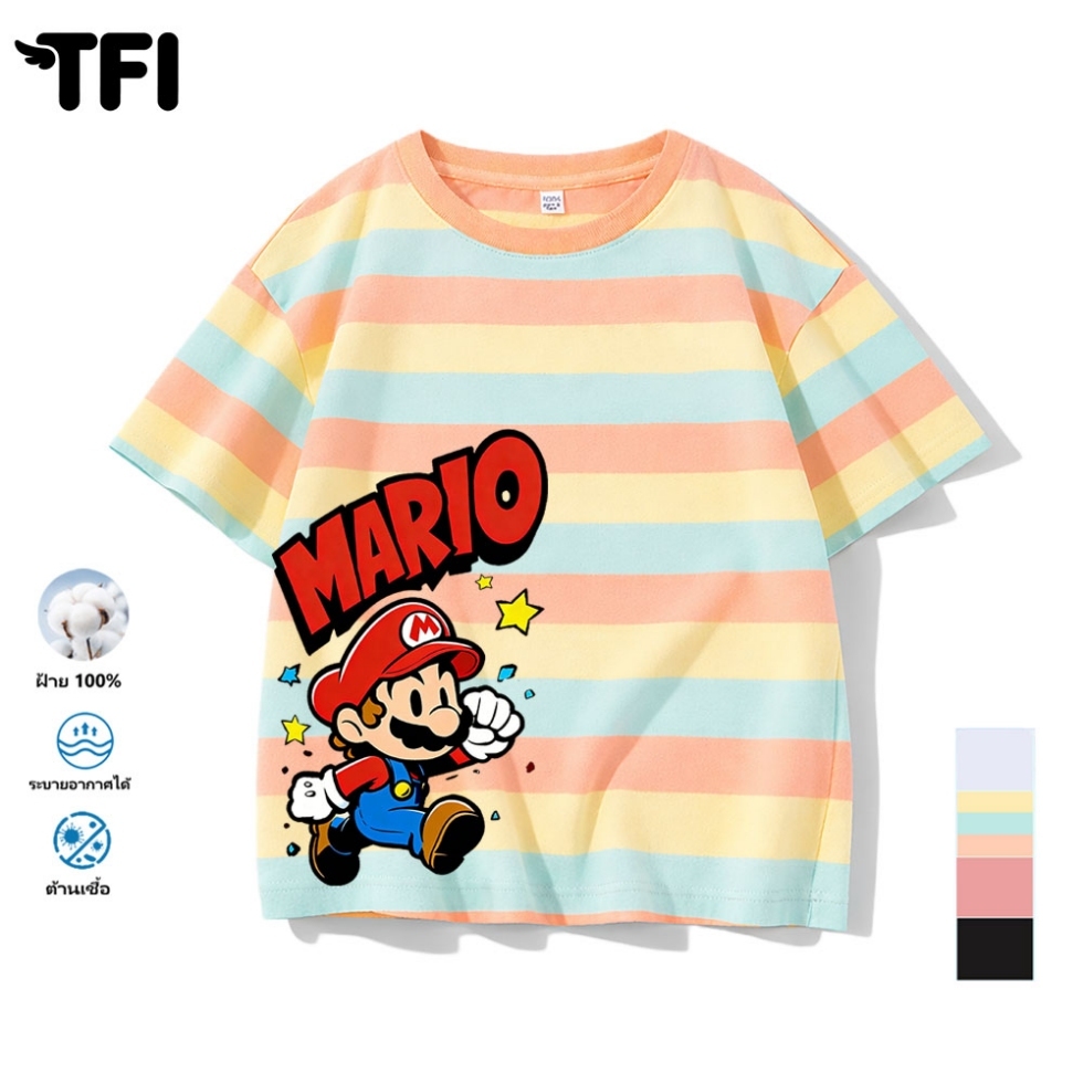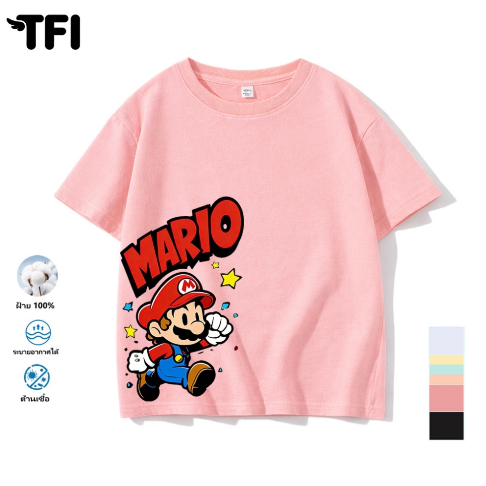 TFI เสื้อยืดแขนสั้นเด็ก สไตล์ลำลอง summer Mario พิมพ์ลาย คอตตอน คอกลม หลวมและระบายอากาศ สำหรับเด็ก