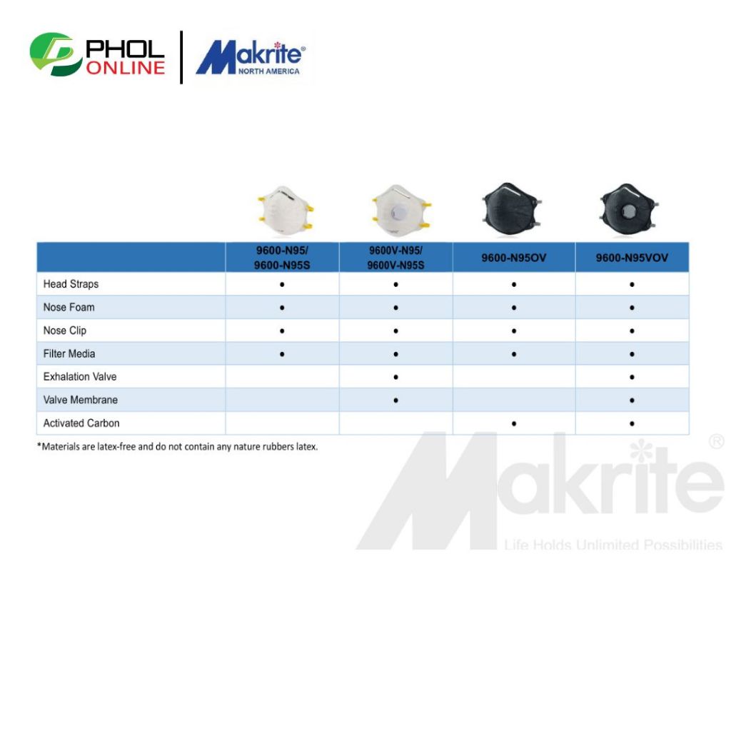 Makrite หน้ากาก N95 รุ่น 9600-N95OV ป้องกันกันฝุ่นละออง สีดำ (ยกกล่อง 20 ชิ้น)