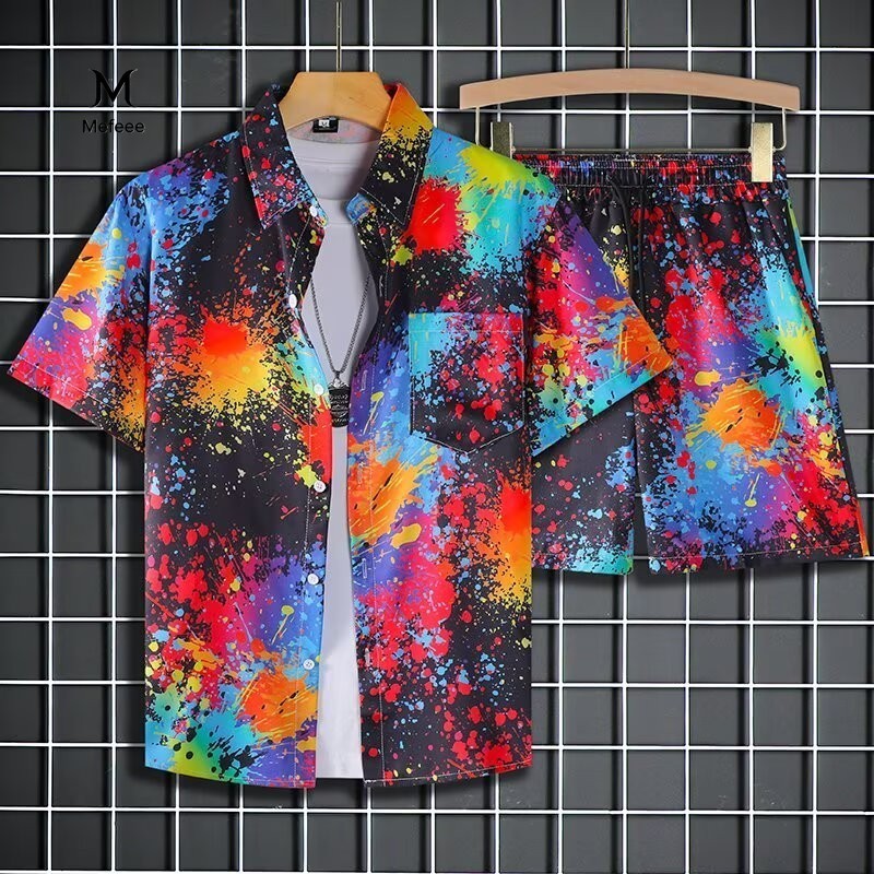 MEFEEE เสื้อฮาวายกางเกงขาสั้นเซ็ต 4 แบบ ผ้าแห้งเร็ว เหมาะสำหรับสงกรานต์ ทุกเพศวัย