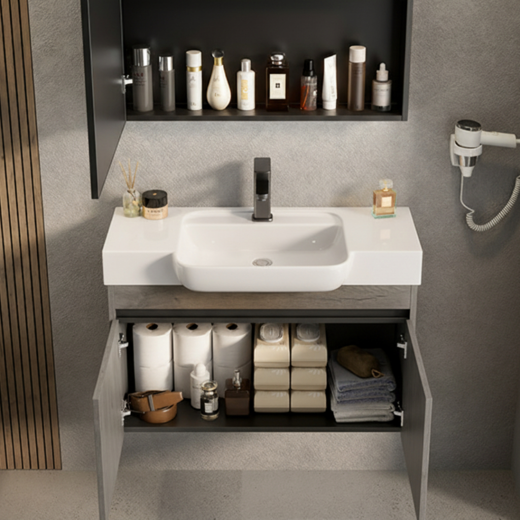 Forward อ่างล้างมือ อ่างล้างมือพร้อมเคาว์เตอร์ วัสดุอ่างเซรามิคตู้ไม้เทียมPVC ลายไม้ มี2ขนาด basin cabinet รุ่น Bas-N281