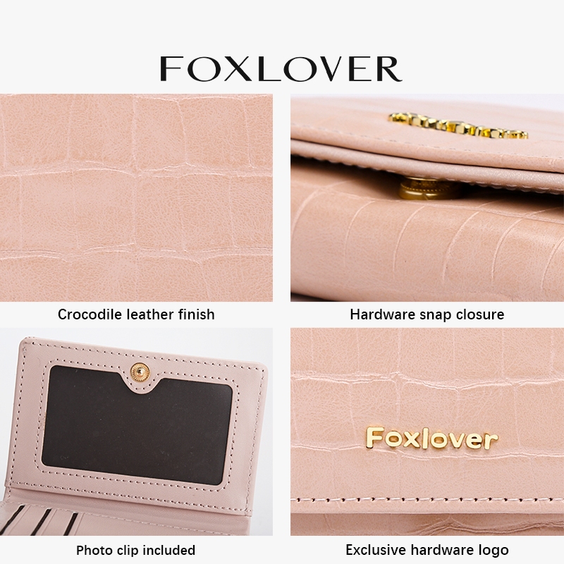 FOXLOVER กระเป๋าสตางค์ผู้หญิงแบบสั้นสามพับ มีให้เลือกทั้งสีชมพู สีดำ และสีขาว