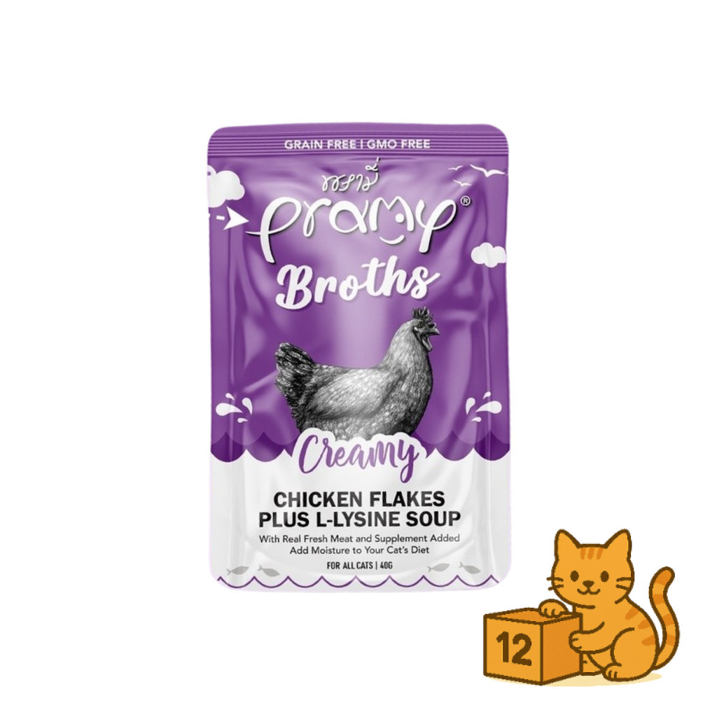 ( ยกโหล 12 ซอง ) Pramy Broths พรามี่ ซุปแมว สูตรซุปใส ซุปครีม หอมน่าทาน สะดวกทุกมื้อ ขนาด 40 กรัม