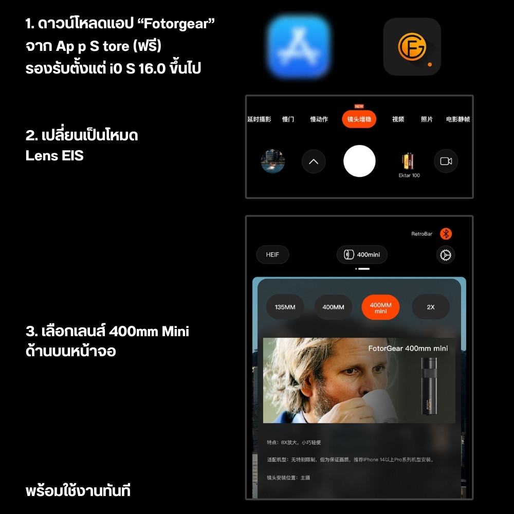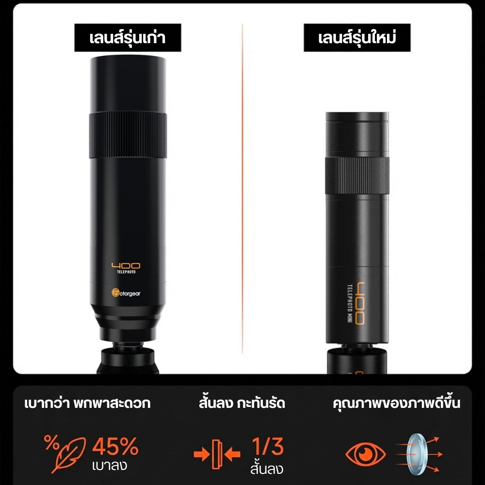 Fotorgear เลนส์ซูมมือถือ Mini 400mm Telephoto Lens กันสั่น EIS ถ่ายคอนเสิร์ต สัตว์ป่า พอร์ตเทรต
