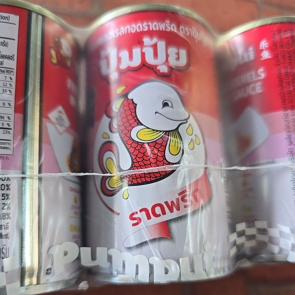 ปลาแมคเคอเรลทอดราดพริก ปุ้มปุ้ย | 1 แพ็ก 10 กระป๋อง (ยกแพ็ก)