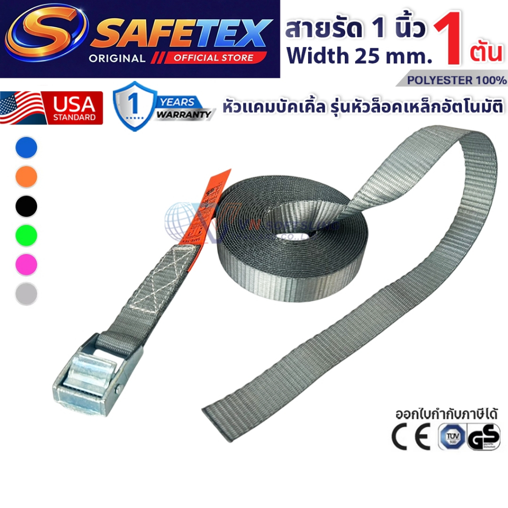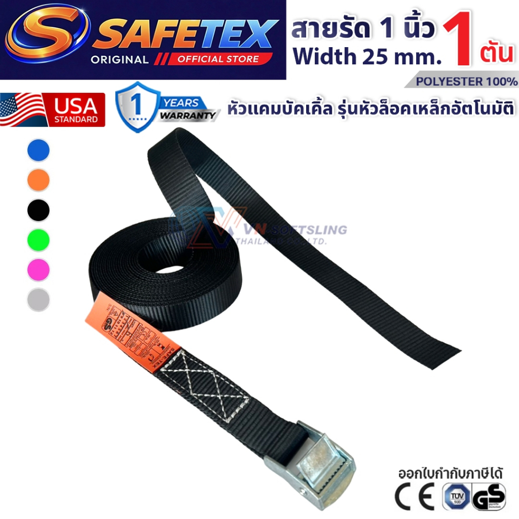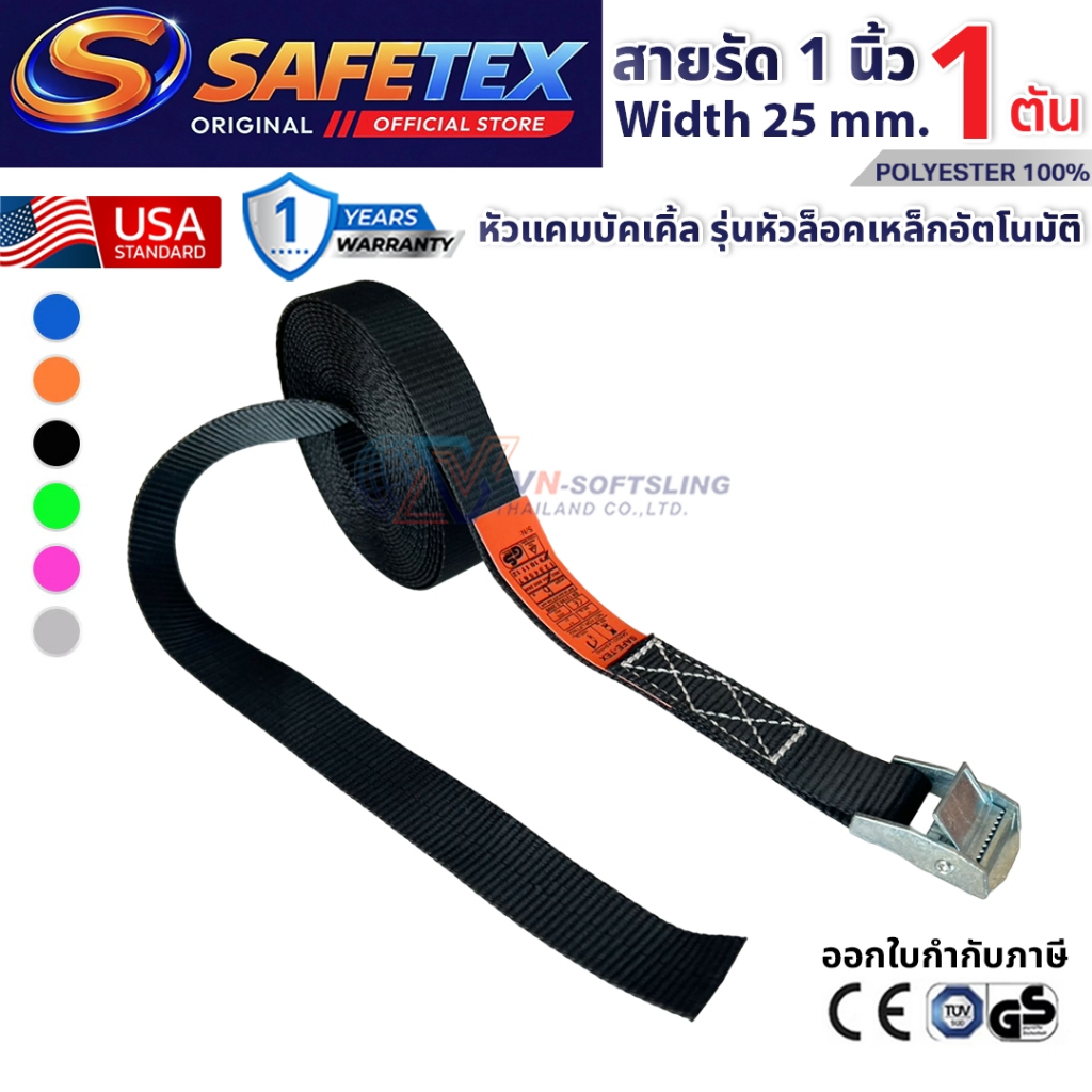 สายรัดวันเวย์ 1 ตัน (หัวล็อกอัตโนมัต) SAFETEX USA สายรัดมอไซด์ สายรัดของ สายรัดรถ สายรัดไรเดอร์