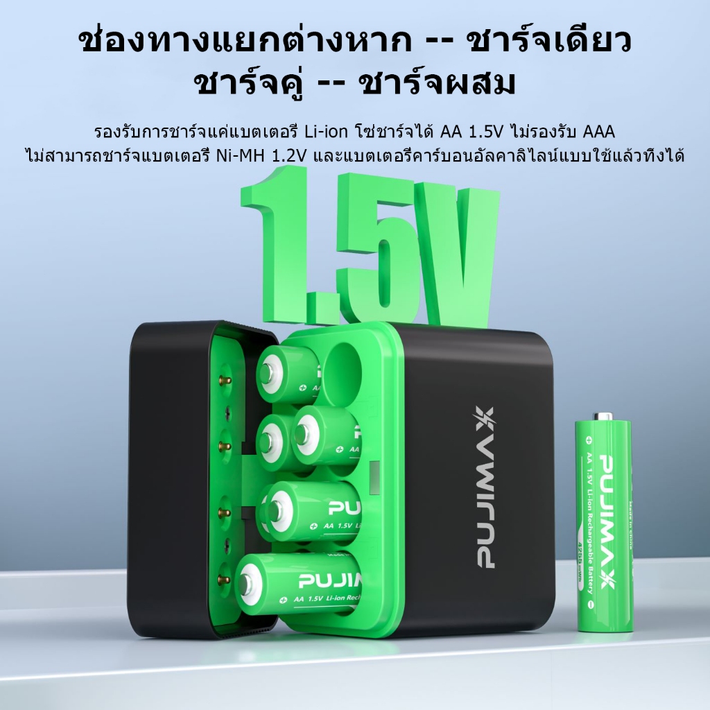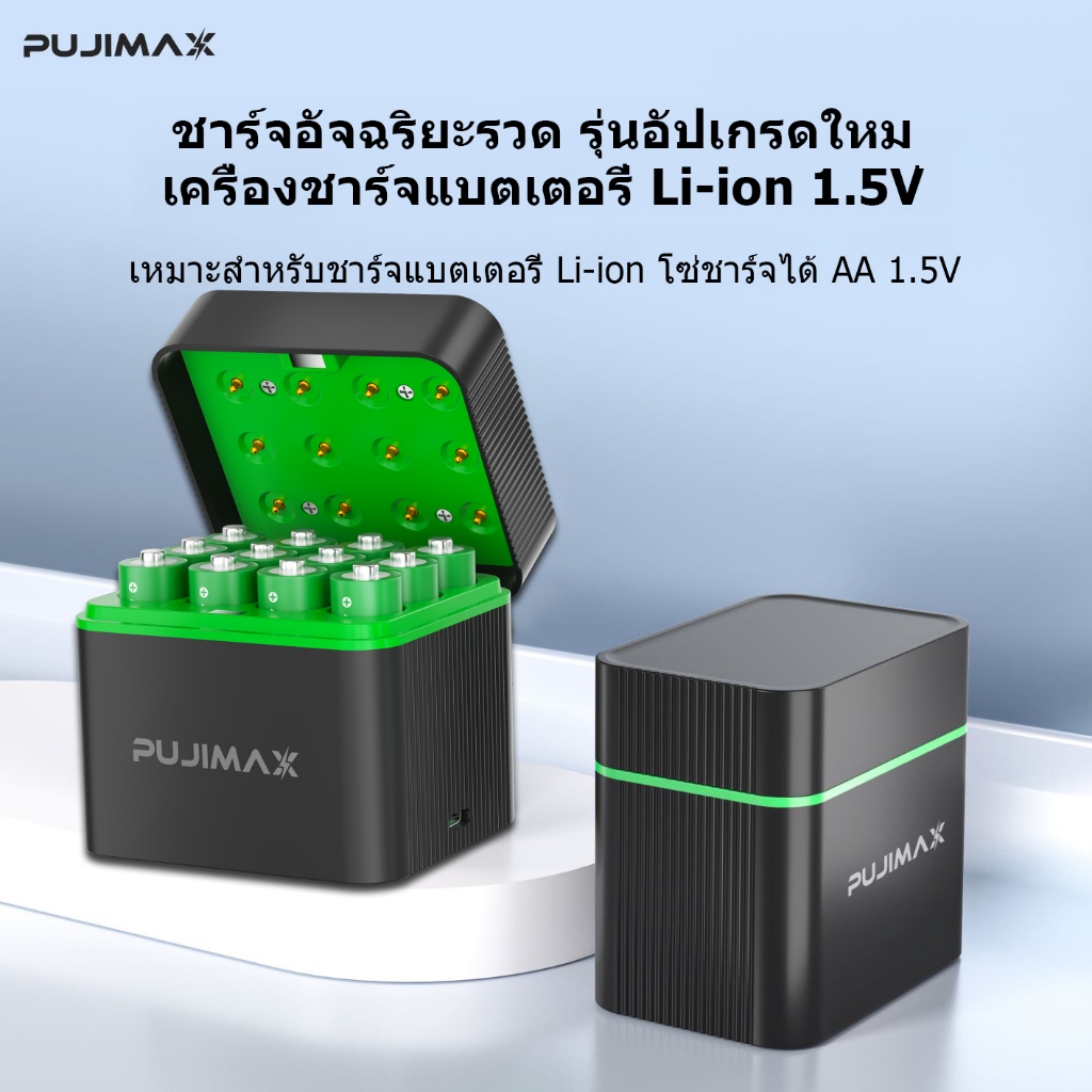 PUJIMAX เครื่องชาร์จถ่าน 12ช่อง รองรับ 1.5V AA ถ่านชาร์จLi-ion เช่น4255mWh ป้องกันชาร์จเกินอัตโนมัติ