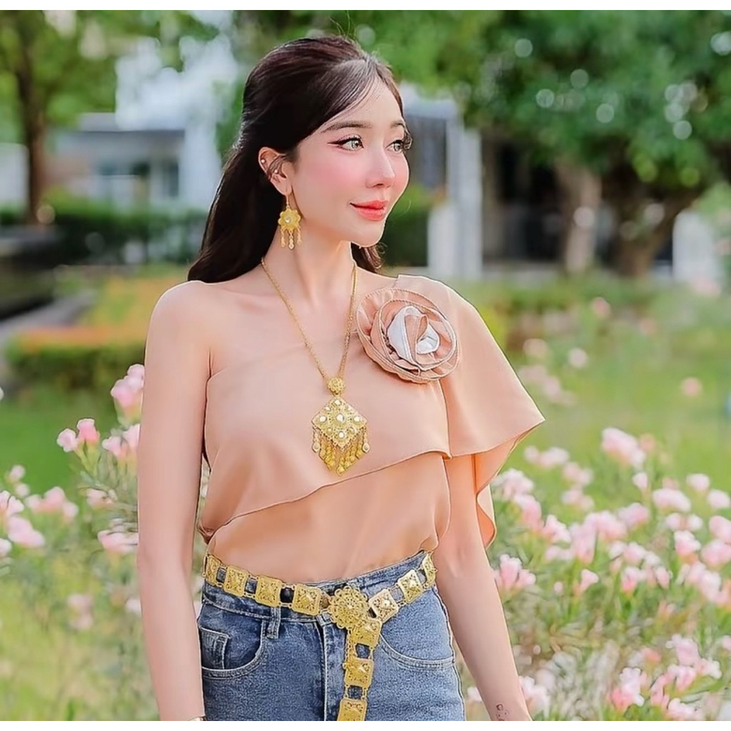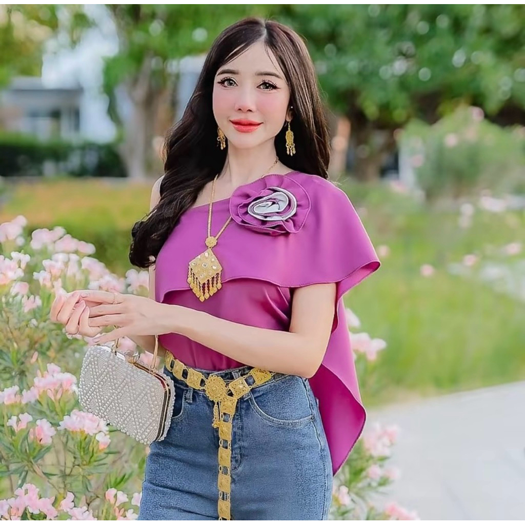 rosequeenเสื้อแต่งสไบพื้นแต่งดอกกุหลาบทูโทน