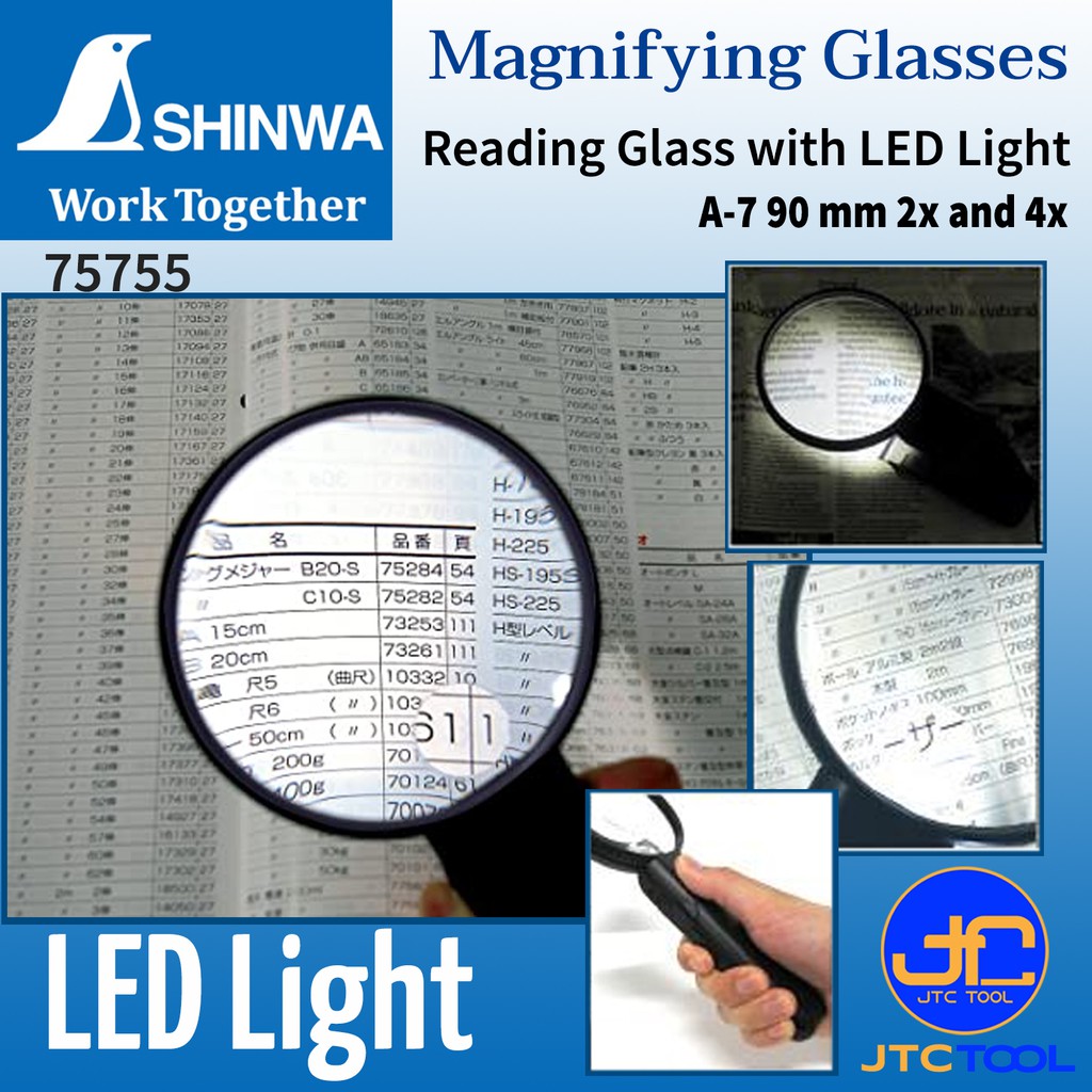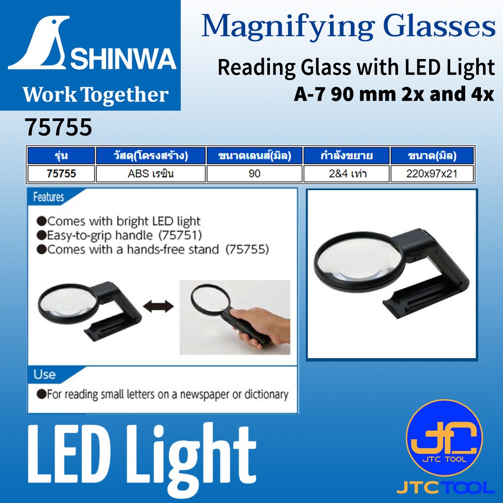 Shinwa เลนส์ขยายพร้อมไฟ - Magnifying Glass with LED Light No.75755
