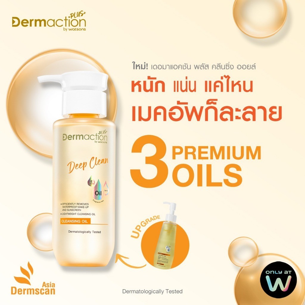 ลดเพิ่ม 30% 🔥 Dermaction Plus by Watsons ดีพ คลีน คลีนซิ่ง ออยล์-เจนเทิล ไบ-เฟส อาย แอนด์ ลิป เมคอัพ รีมูฟเวอร์ 180 มล.