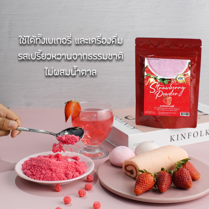 ผงสตรอว์เบอร์รี่จากธรรมชาติ สำหรับเบเกอรี่และเครื่องดื่ม ขนาดใหญ่ 500 กรัม