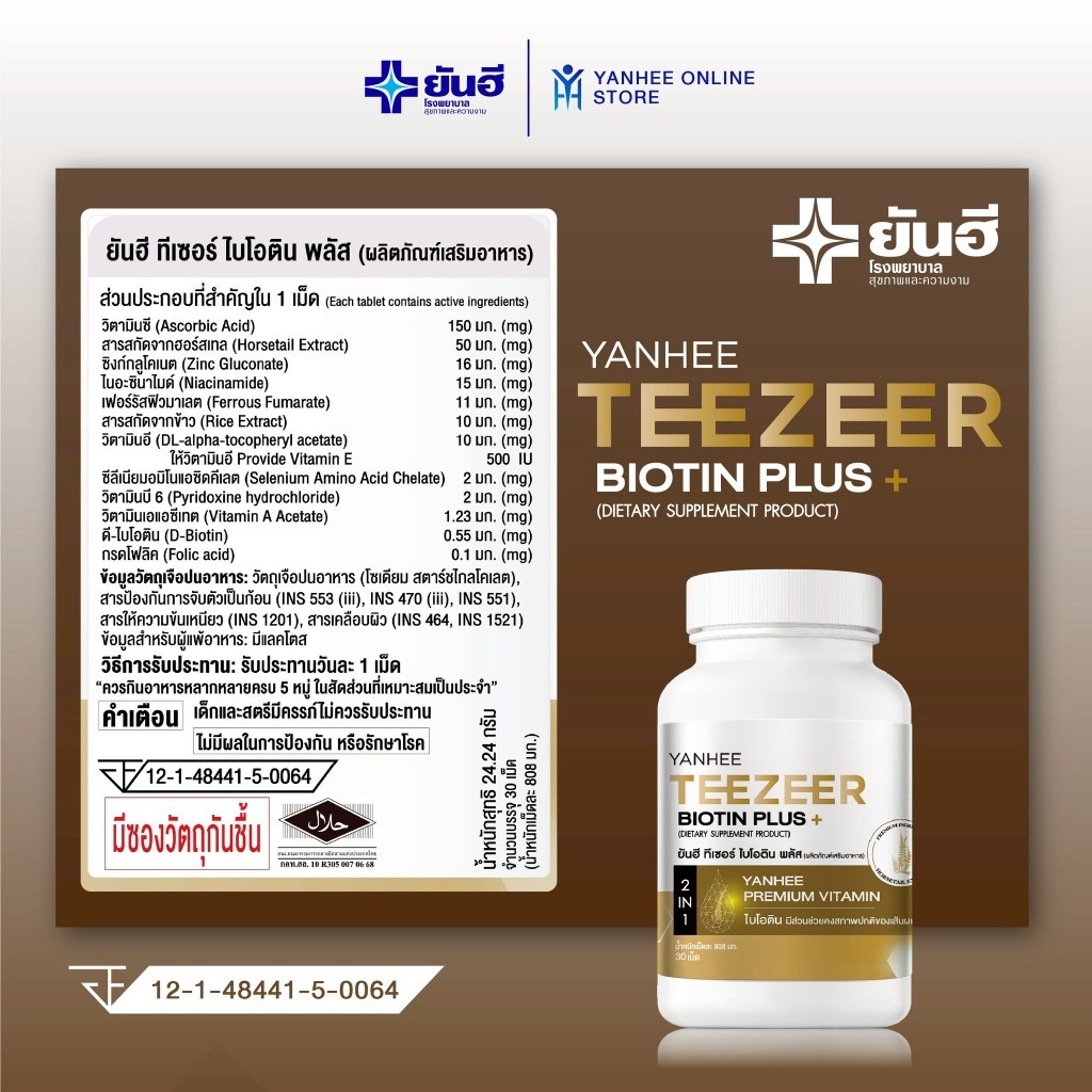 Yanhee Teezeer Biotin Plus ยันฮี ทีเซอร์ ไบโอติน พลัส บำรุงหนังศีรษะ ลดผมร่วง 2 กระปุก