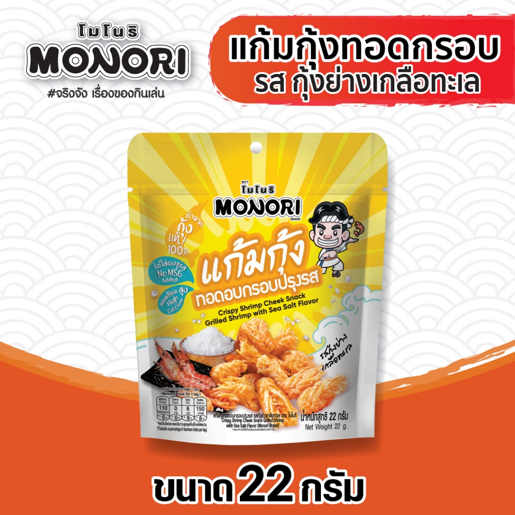 โมโนริ แก้มกุ้ง รวมรส 22 กรัม รสกุ้งย่างเกลือทะเล รสซอสมะขาม (แพ็ค2)