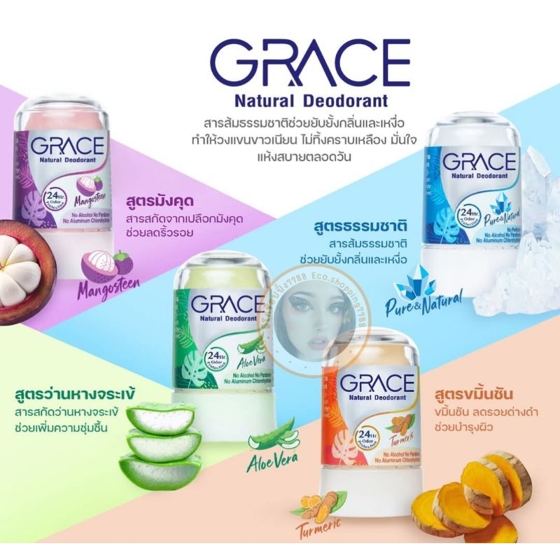 พร้อมส่ง สารส้มระงับกลิ่นกาย เกรซ ทารักแร้ โรลออนสารส้ม ดับกลิ่นเต่า Grace Crystal deoderant
