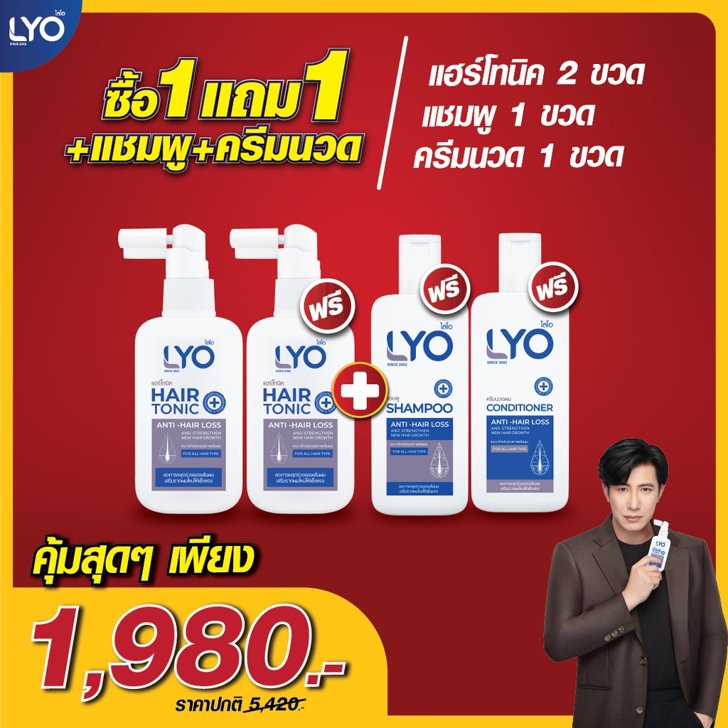 LYO ไลโอ หนุ่มกรรชัย สั่งได้ดั่งใจ| #ส่งฟรี #ครบทุกชุด! (เซรั่มแฮร์โทนิค+แชมพู+ครีมนวด) แก้ผมหลุดร่วง บำรุงผมสร้างผมใหม่