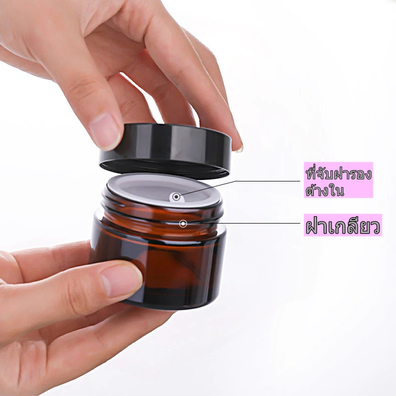 กระปุกแก้วสีชา10/15/20/30/50/100กรัม ฝาสีดำ มีแผ่นรองด้านใน ใส่ชุดบำรุงผิว หรือเทียนหอม กระปุกครีมบำรุงผิว เทียนอโรม่า