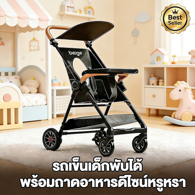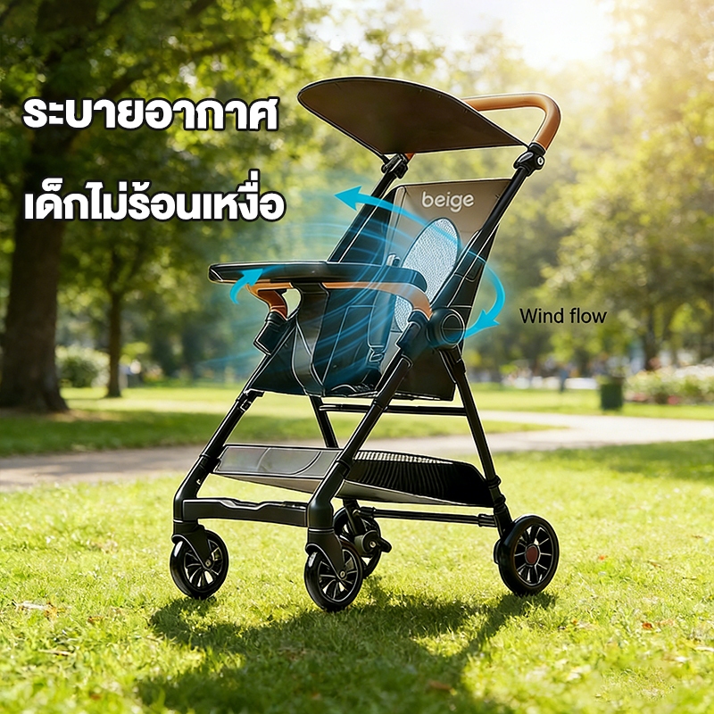 Beige รถเข็นเด็ก รถเข็นเด็กพับได้ ถือขึ้นเครื่องบินได้ น้ำหนักเบา พับเก็บง่าย เหมาะสำหรับเด็ก 0-4 ปี