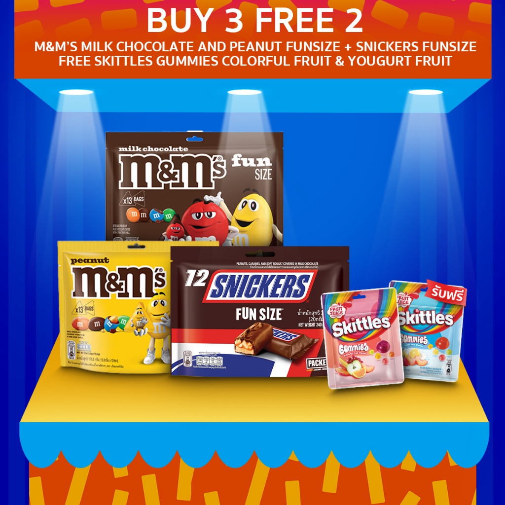 [ซื้อ 3 แถม 2] M&M'S Funsize (Milk + Peanut) + Snickers Funsize ฟรี Skittles Gummies x2