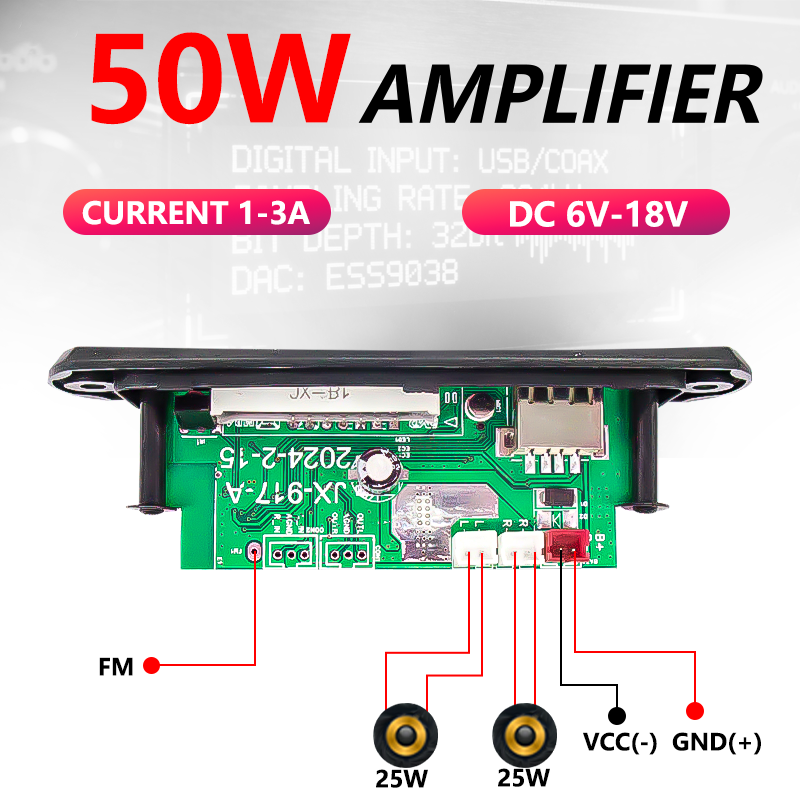 50W บลูทูธเครื่องขยายเสียงดิจิตอลจอแสดงผล 2x25W 6-18V สเตอริโอ Amp สําหรับ DIY Audio