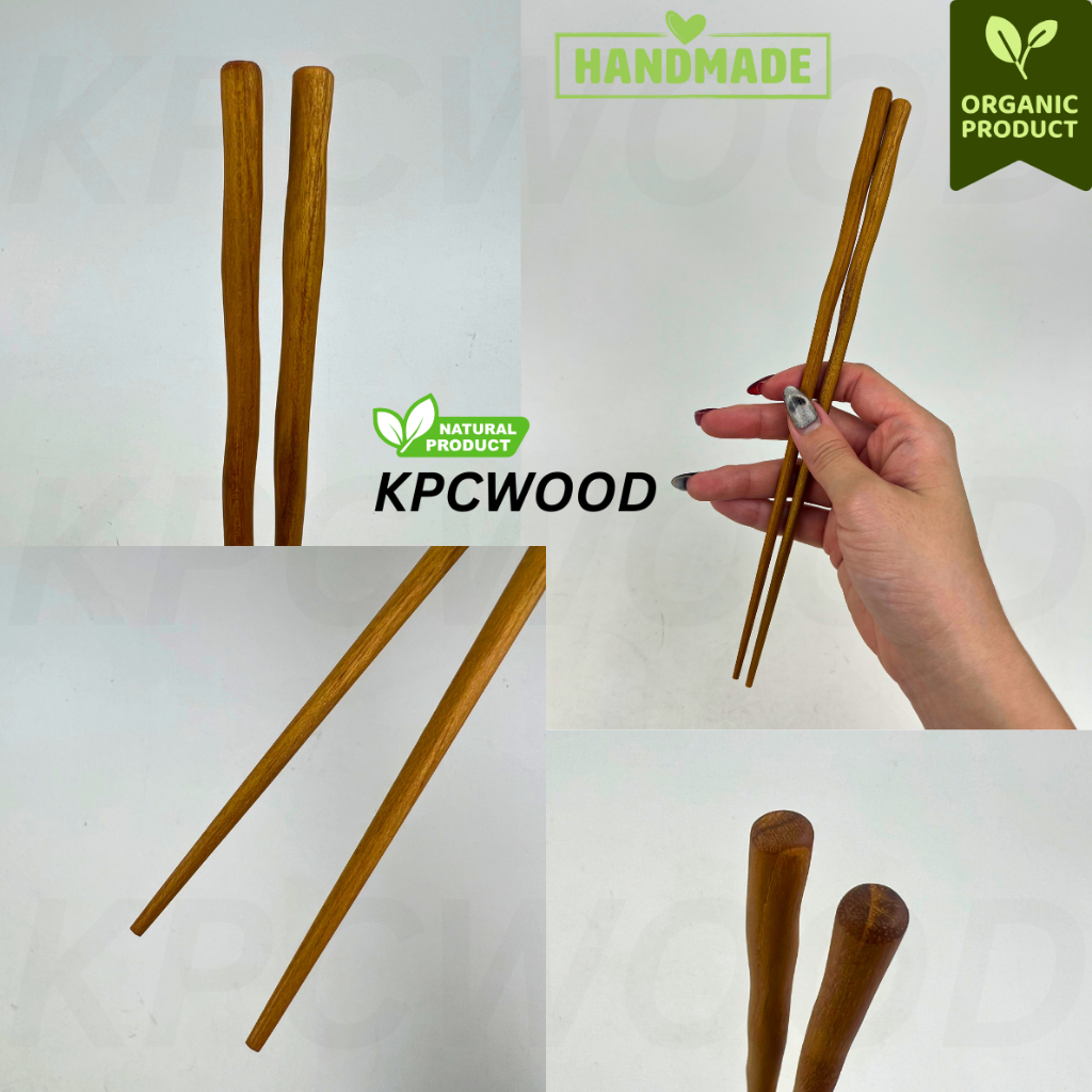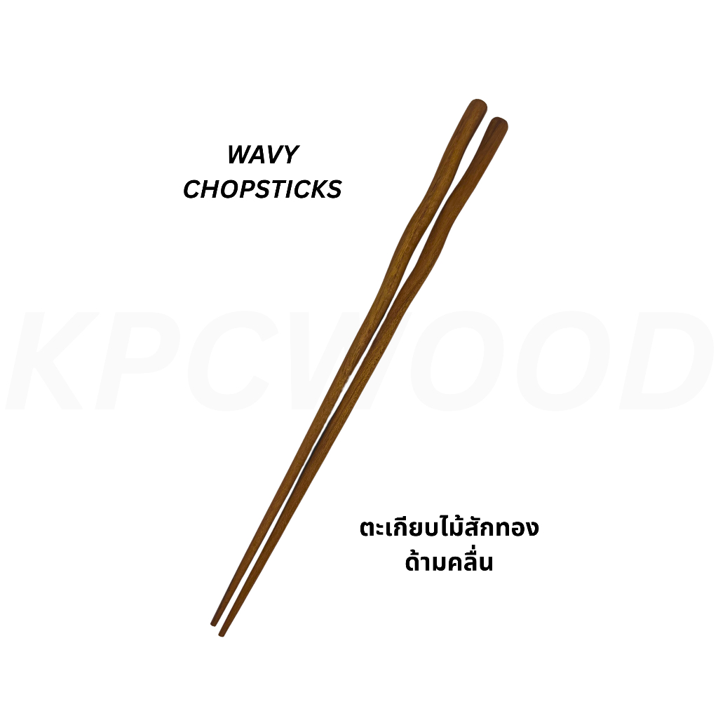 NEW!! KPCWOOD ตะเกียบไม้สักทอง ด้ามคลื่น ยาว 25 cm. - Teak Wavy Chopsticks