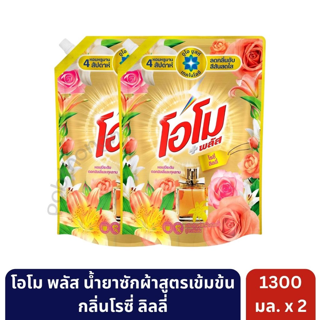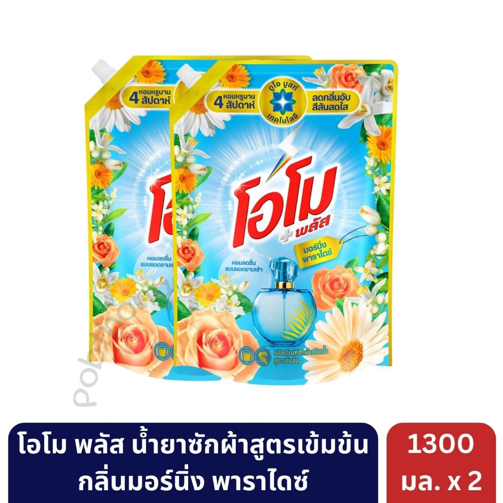 [ส่งไว]โอโม พลัส น้ำยาซักผ้าชนิดน้ำสูตรเข้มข้น ขนาด 1300 มล. [ 2 ถุง ] | มั่นใจของแท้ 💯