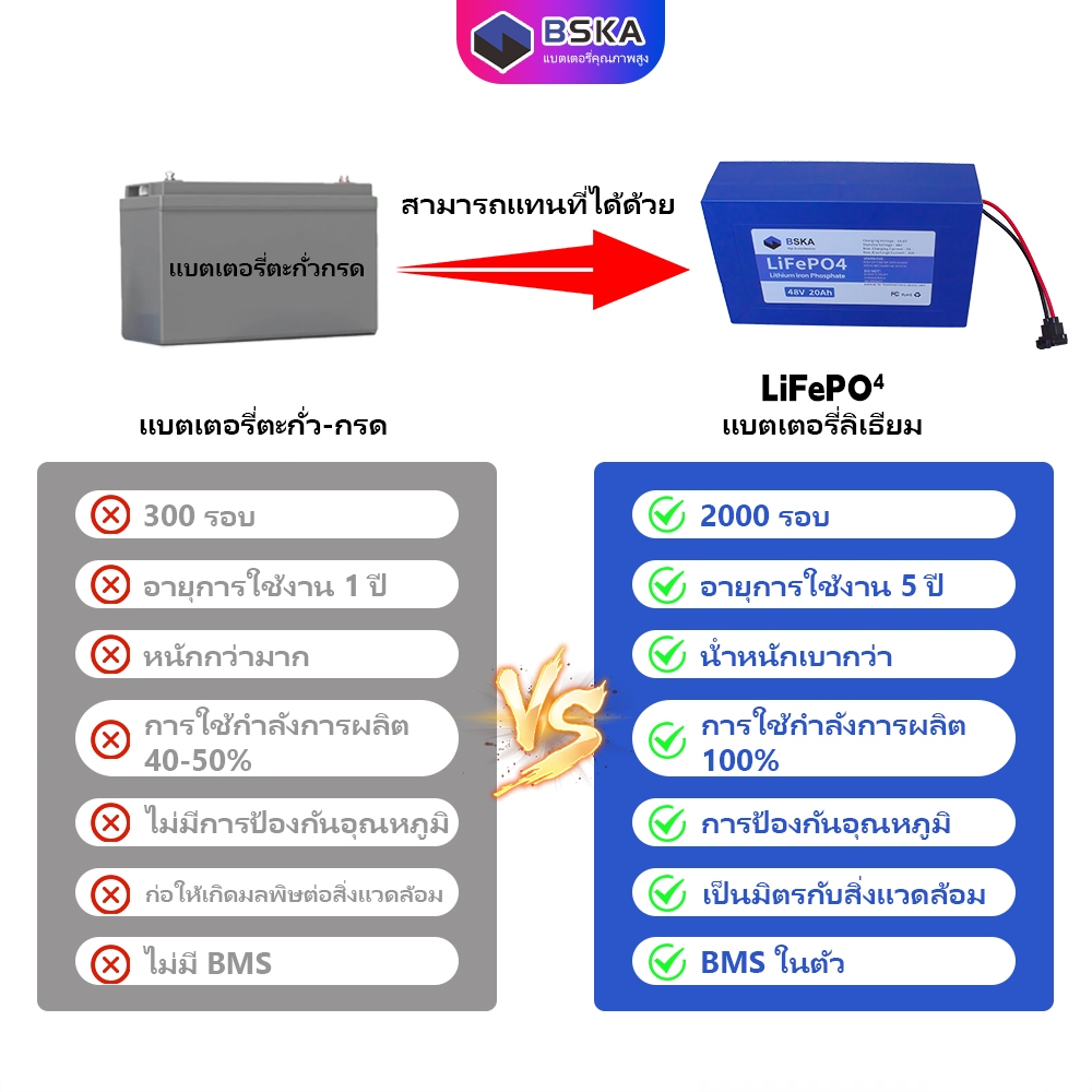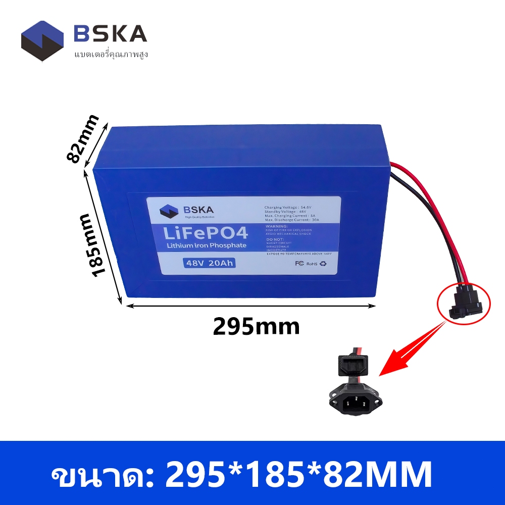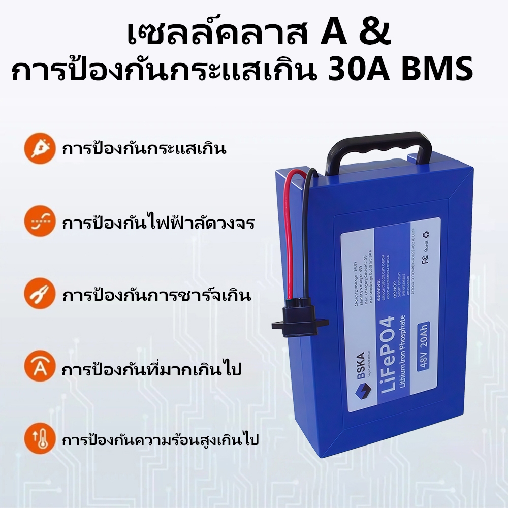 BSKA (ป้ายสีน้ำเงิน) 48V 20Ah LiFePO₄แบตเตอรี่ลิเธียมพร้อมสายชาร์จและสายต่อ