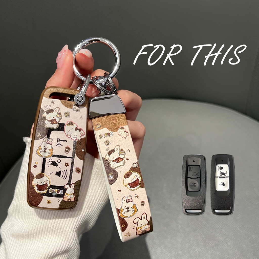 OFF CURVE ภาพวาดสีน้ํามันกระต่าย Honda pcx160/giorno/forza 350/คลิก 160 พวงกุญแจรถจักรยานยนต์ Honda เคสกุญแจรถมอเตอร์ ปลอกกุญแจ Diy เคสกุญแจ Kitty