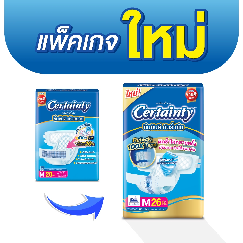 Certainty Tape ผ้าอ้อมผู้ใหญ่แบบเทป เซอร์เทนตี้ เทป ขนาดจัมโบ้ x 4แพ็ค ไซส์ M, L, XL-XXL