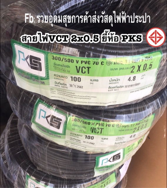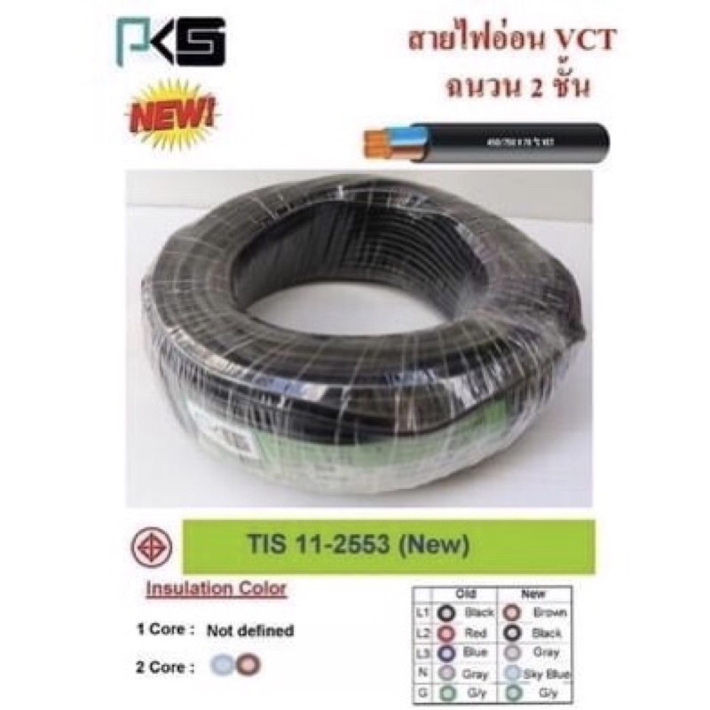 สายไฟ VCT 2*0.5 ยาว100เมตร PKS ทองแดงเต็ม✅มาตรฐาน💯มอกฉนวน2ชั้น ทองแดงแท้ สายไฟอ่อน⚡️