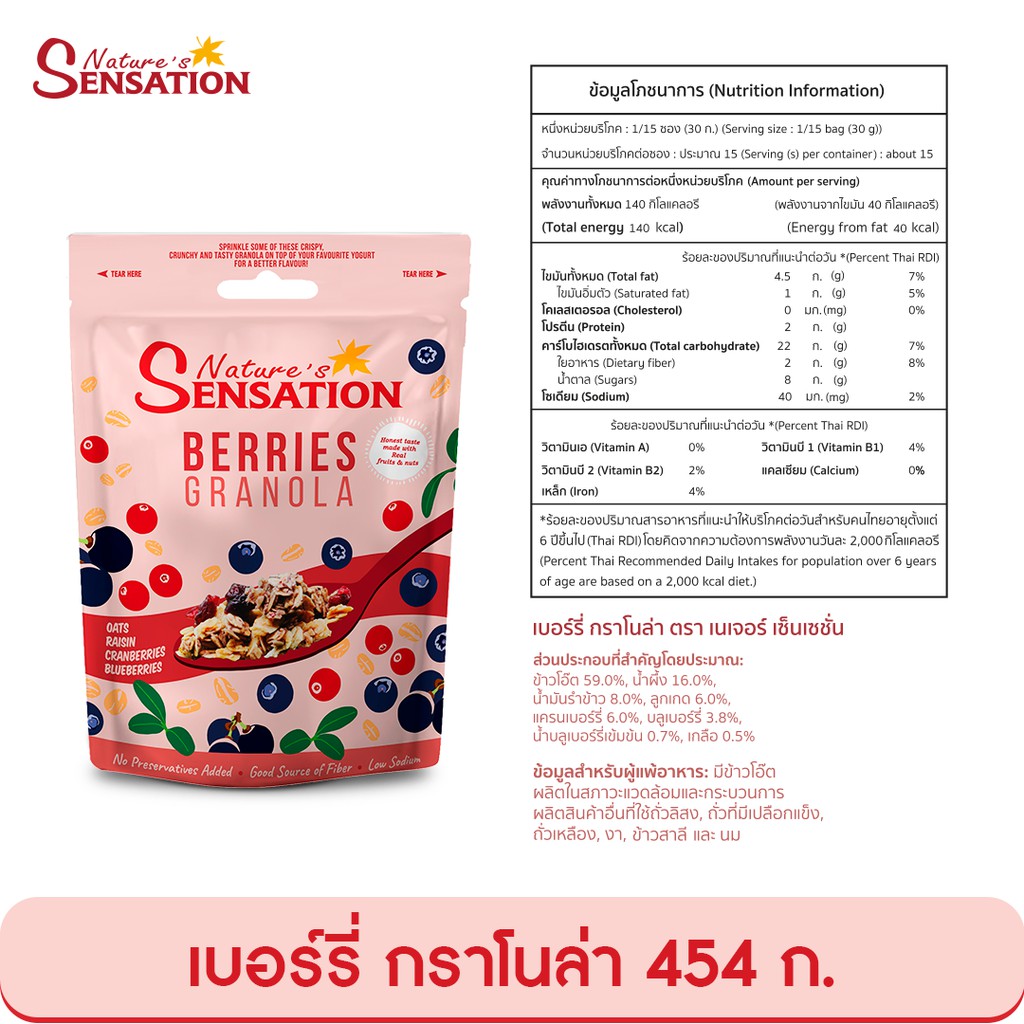 เนเจอร์ เซ็นเซชั่น เบอร์รี่ กราโนล่า 454 ก. Nature’s Sensation Burries Granola 454 g.