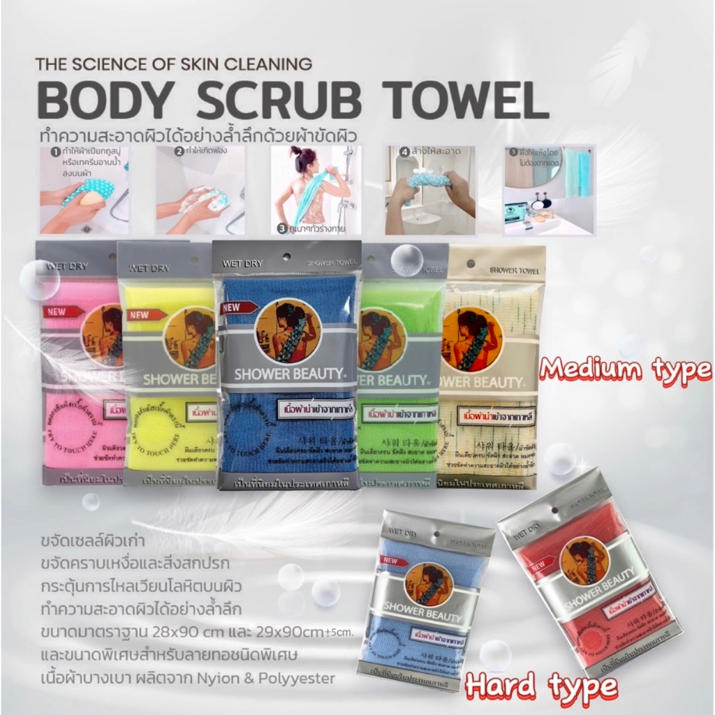 SHOWER BEAUTY[Shower scrub towel]ผ้าขัดผิวกาย ผืนเดียวครบขัดผิวสะอาดล้ำลึกแม้ในจุดที่ยากต่อการขัด