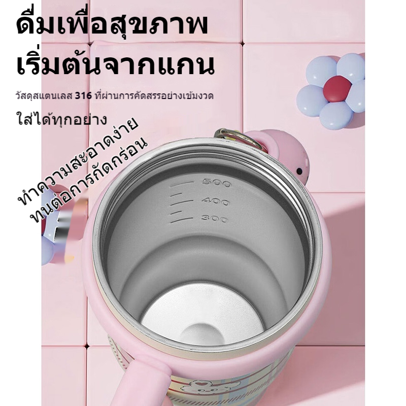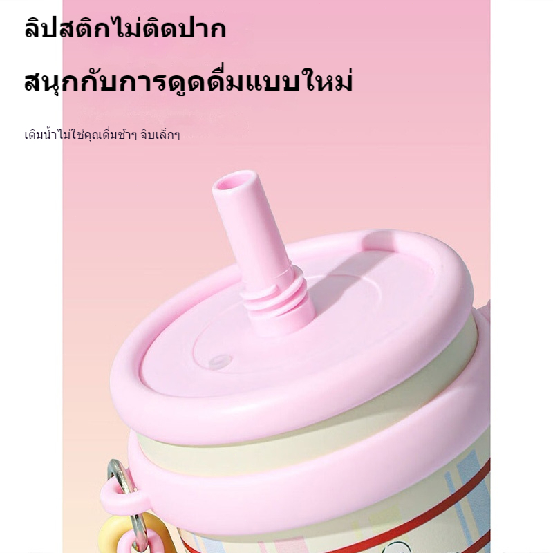 แก้วเก็บอุณหภูมิ ขนาดความจุ600ml สแตนเลส316 แก้วน้ำเก็บความเย็น ลายการ์ตูน มีหลอดดูด พร้อมหูจับ แก้วเด็ก แก้วกาแฟ