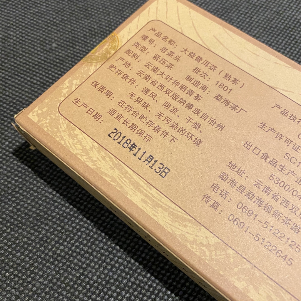 ชาผู่เอ๋อร์ สุก ต้าอี้ รุ่น เหล่าฉาโถว ปี 2018 น้ำหนัก 250 กรัม