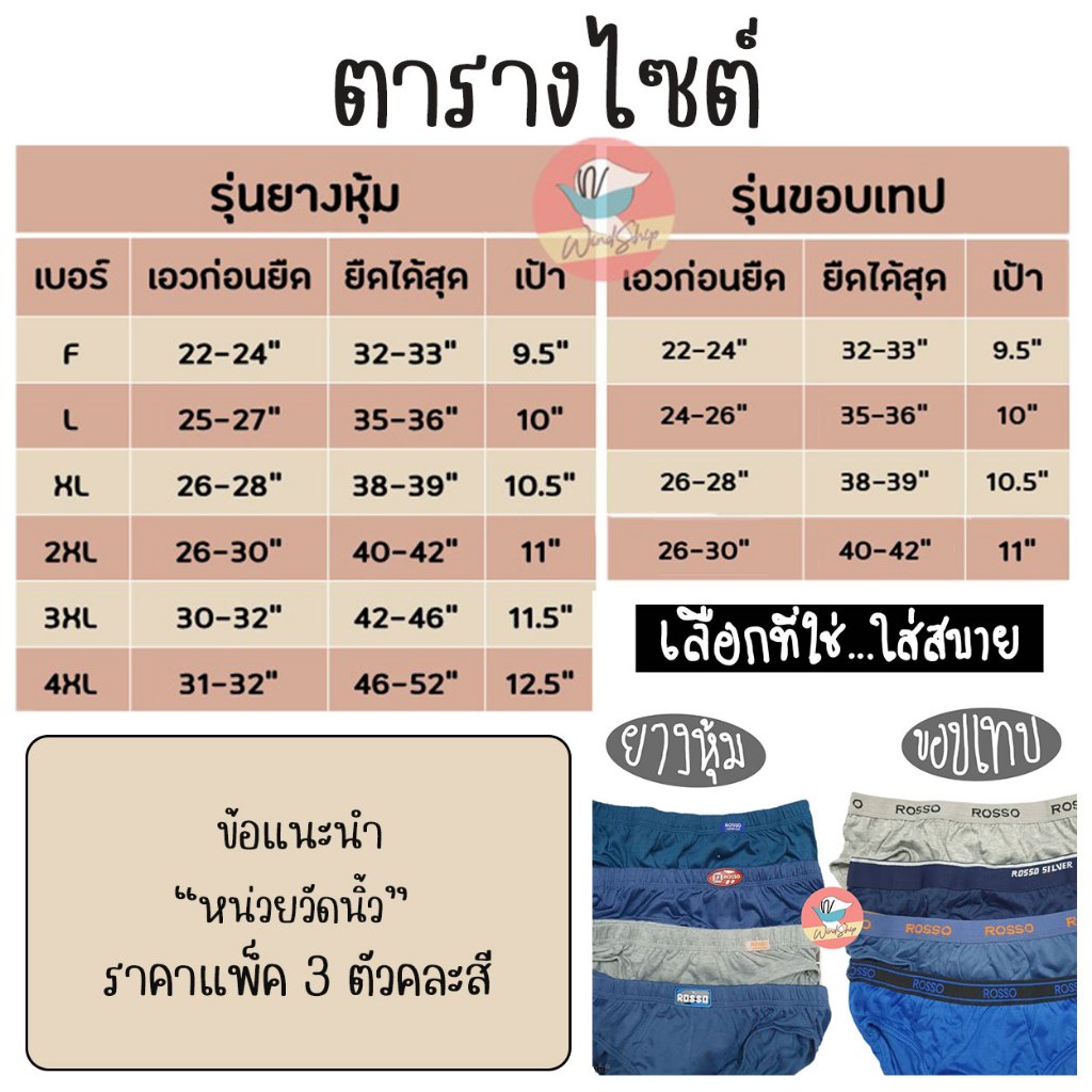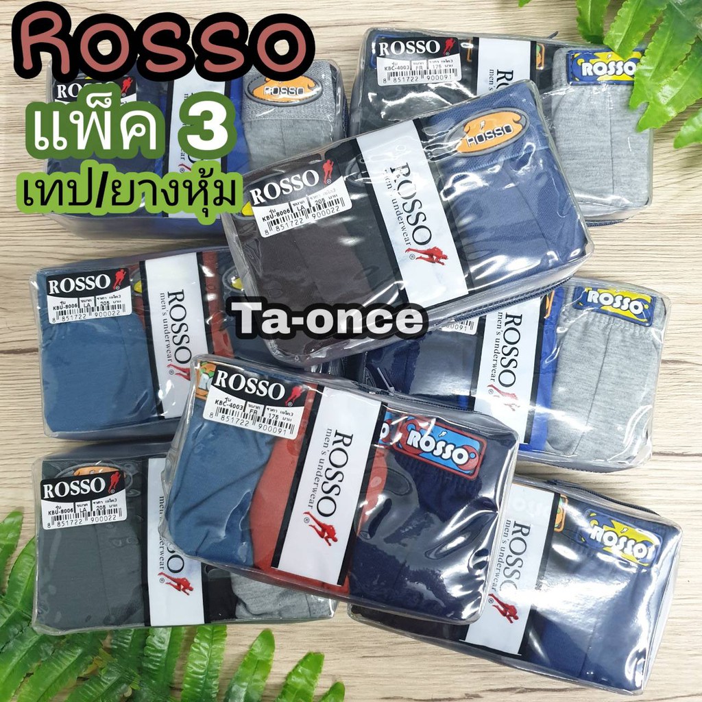 Rosso JPress กางเกงใน (แพ็ค 3 ตัว แถมถุง!!!) กางเกงในชาย รอสโซ่ เจเพลส รุ่นยางหุ้ม/ขอบเทป
