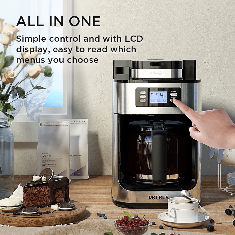 Petrus เครื่องกาแฟ เครื่องชงกาแฟอัตโนมัติ สามารถบดเมล็ดกาแฟได้ สามารถใช้เมล็ดกาแฟและผงกาแฟได้ PE3200