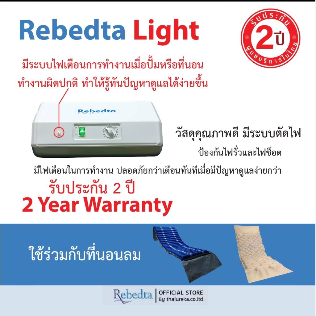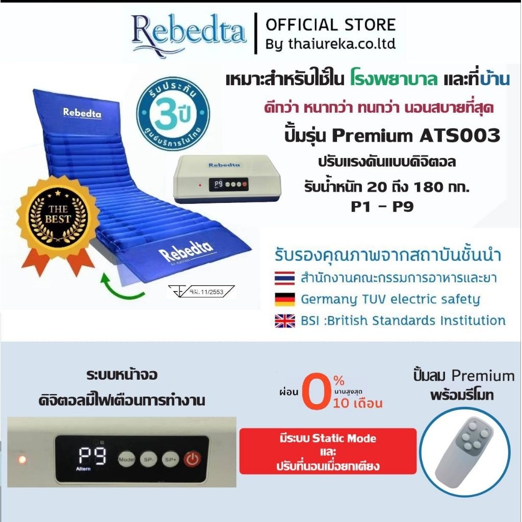 Rebedta ATS ที่นอนลมป้องกันแผลกดทับ เพื่อสุขภาพสำหรับผู้ป่วยติดเตียง แบบลอนและรังผึ้ง ศูนย์ไทย มี อย.มาตรฐาน BSI CE FDA