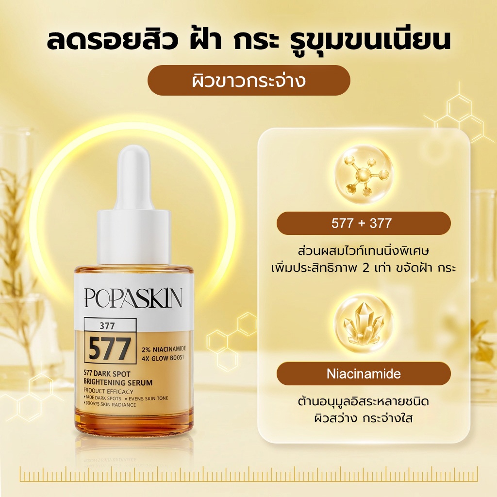 POPASKIN 577+377 Dark Spots Brightening Serum เซรั่มหน้า ลดรอยสิว จุดด่างดำ ฝ้า กระ ผิวใส ผิวแพ้ง่ายใช้ได้ 30ML